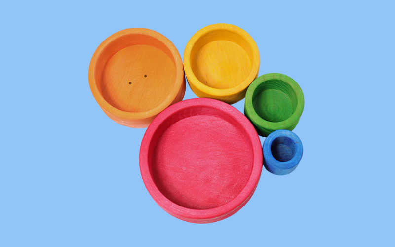 El juego de cuencos Grimms ha sido galardonado con el sello "spiel gut" y apoya incluso a los velocistas más pequeños en su impulso de organizarse y explorar y puede promover de forma lúdica las habilidades motoras, la coordinación, la curiosidad y la comprensión de los colores y las formas.